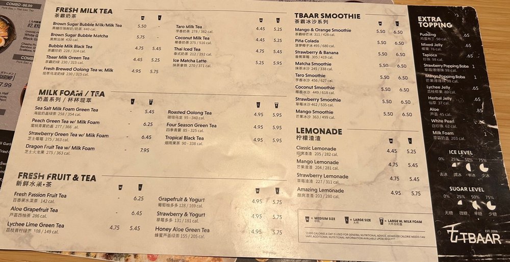 Combo includes: Tokyo Tonkotsu Shouyu Ramen (Choose Garlic Oil Flavor) Matcha Pudding w. red bean Steamed pork bao bun Thai Iced tea